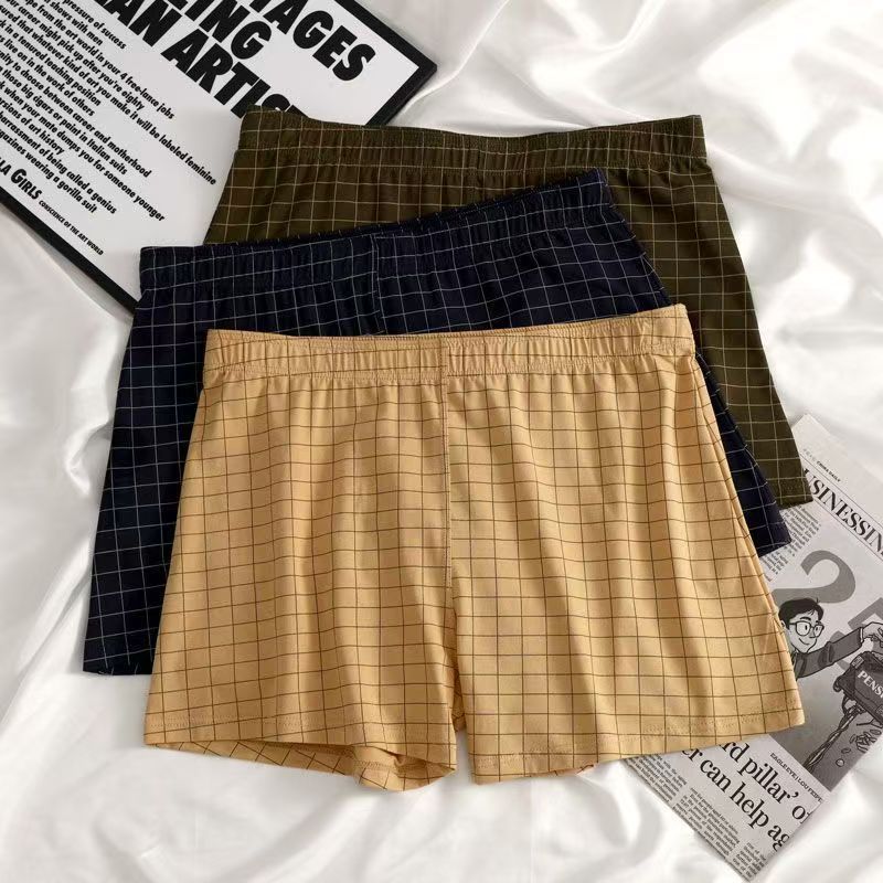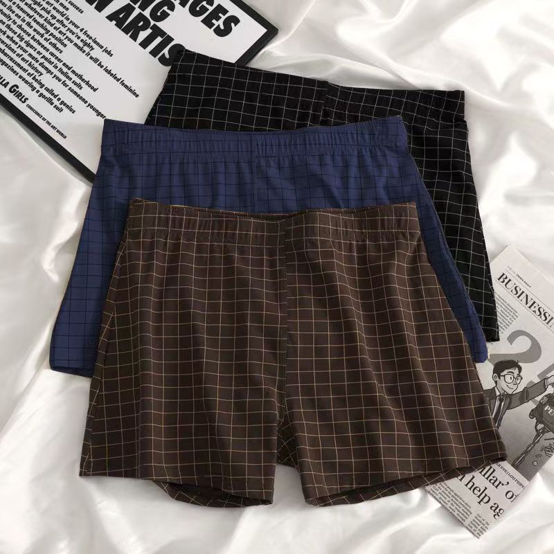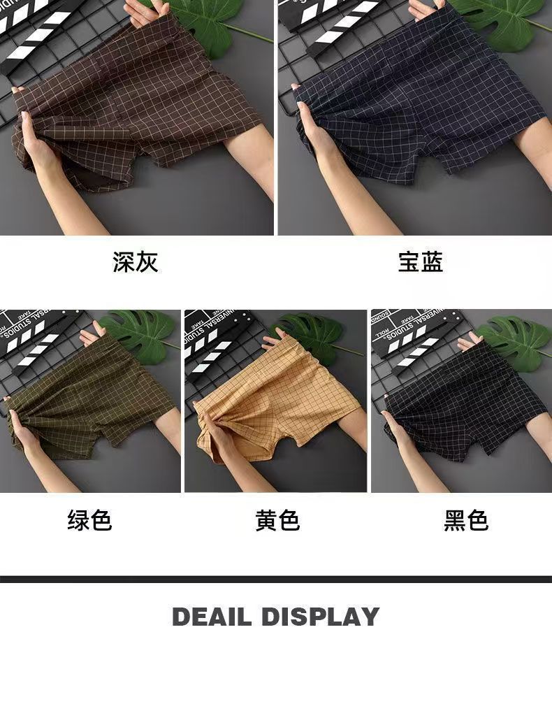 男士內褲新款舒適寬鬆格子阿羅褲中腰大碼男生四角透氣親膚短褲衩