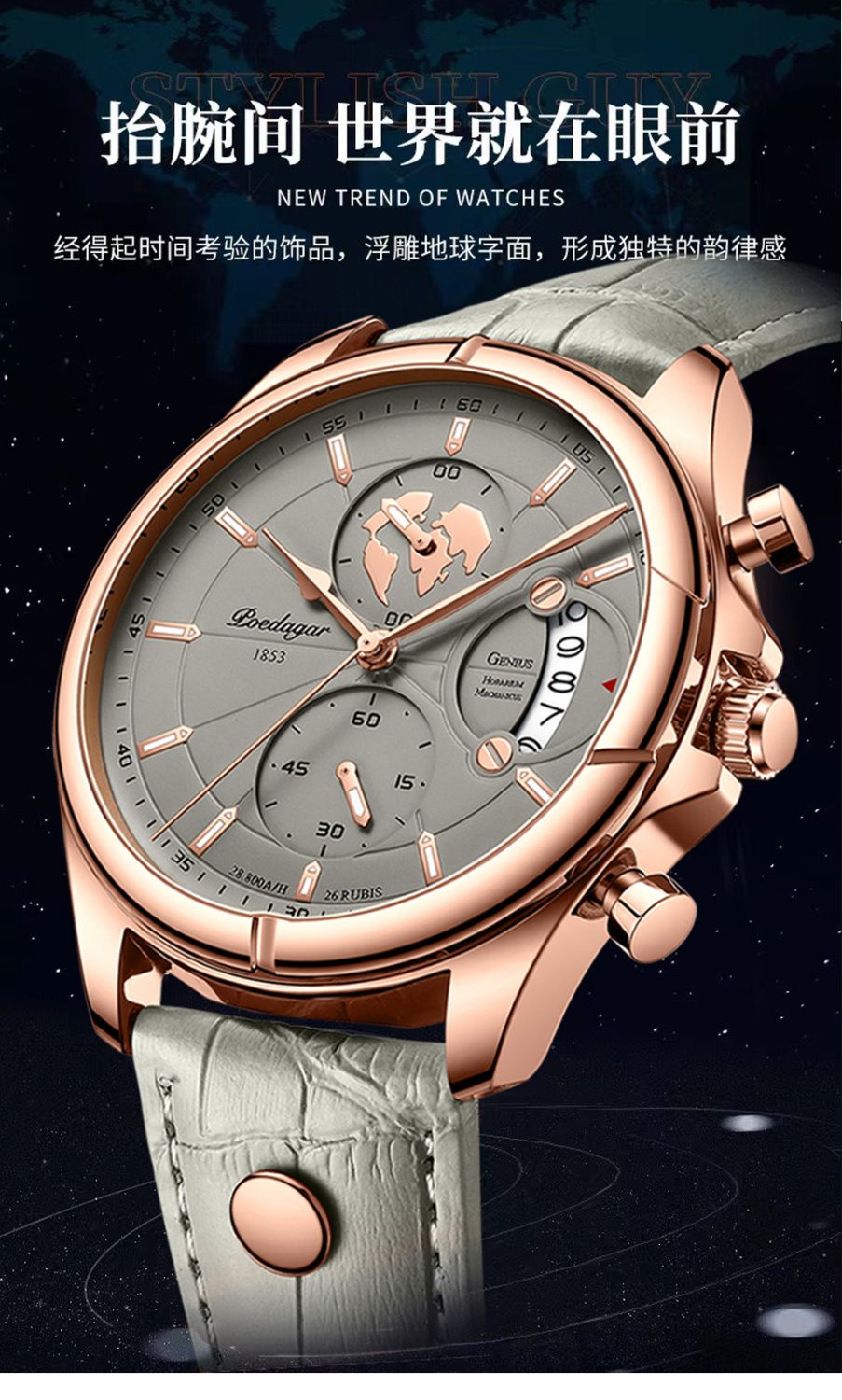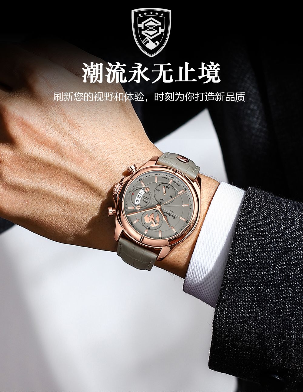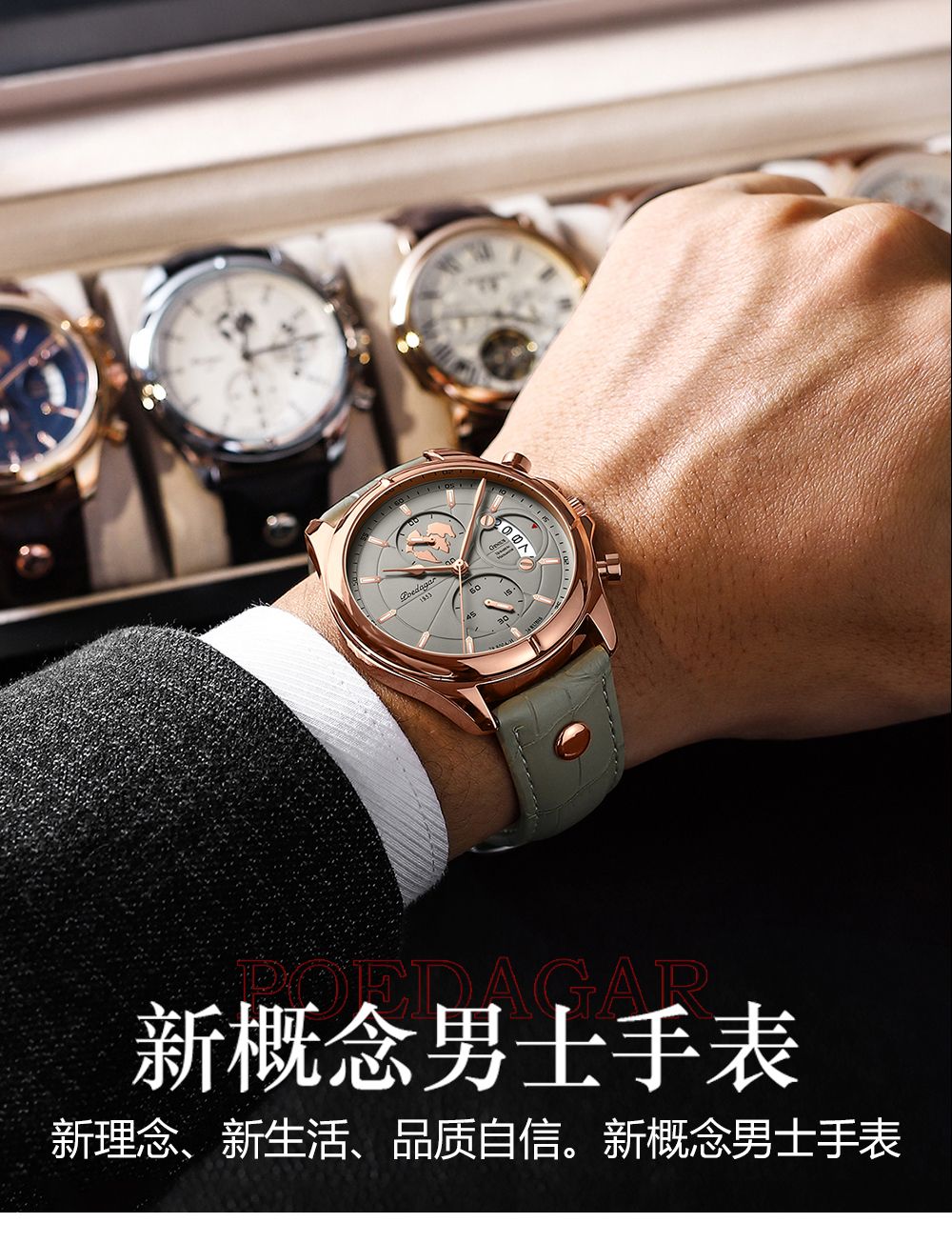 航海家新款男士手表防水日历潮流高級輕奢真皮腕錶