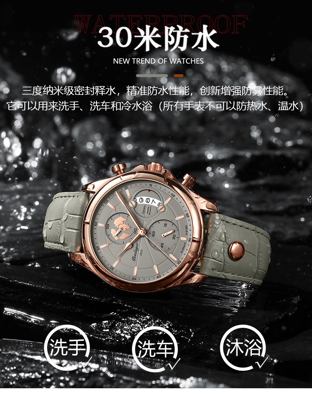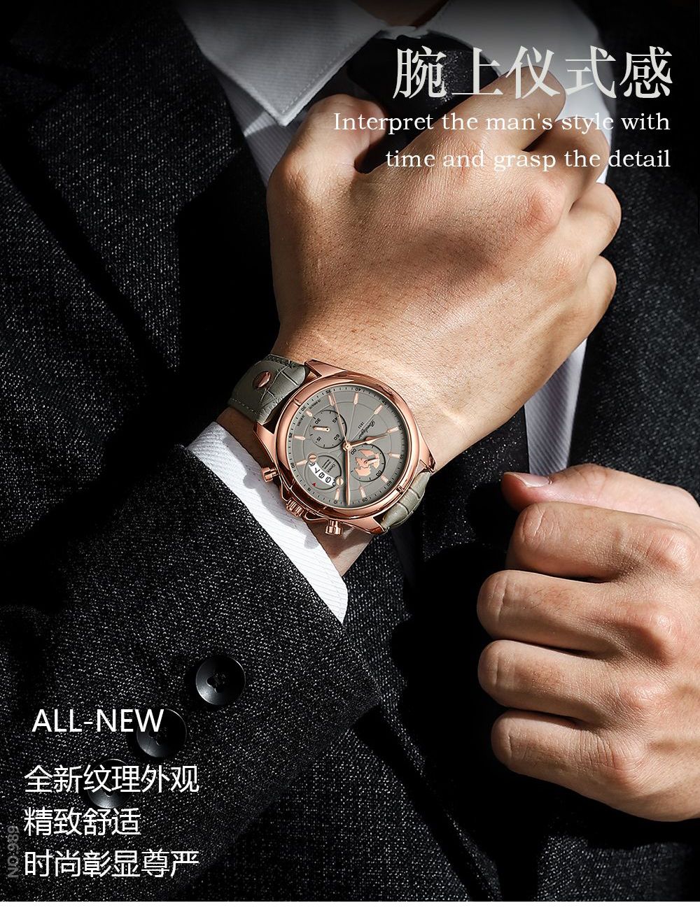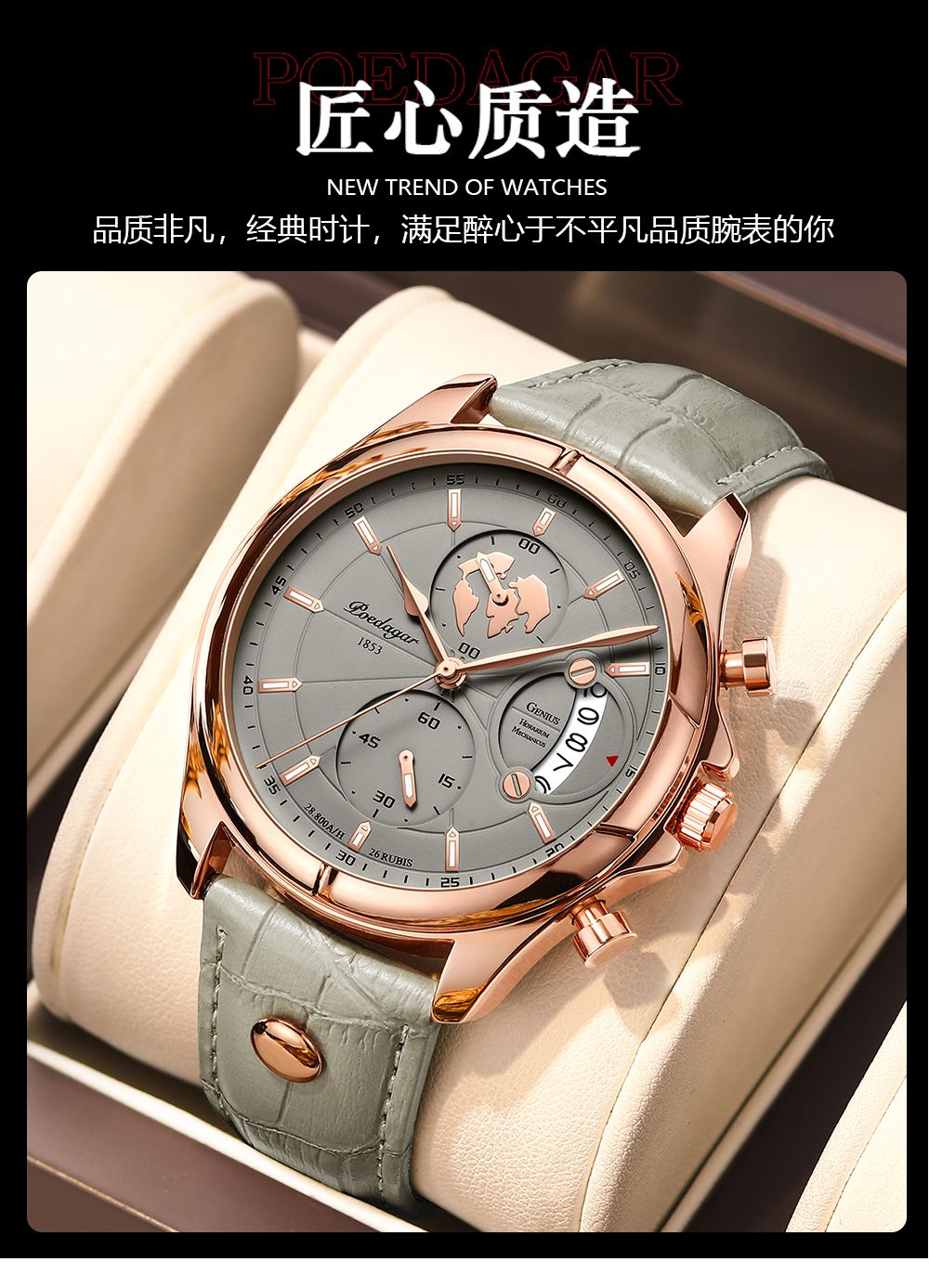 玫金殼卡其面皮帶