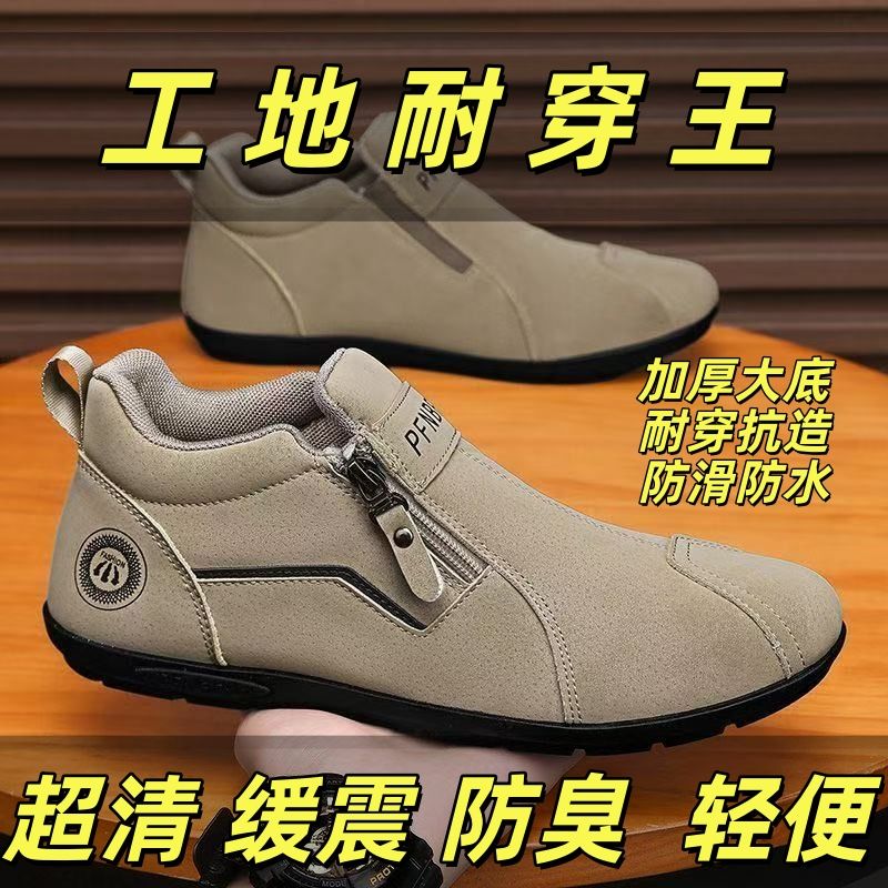 新款一腳蹬軟底上班開車勞保鞋阿甘潮鞋男士工作鞋
