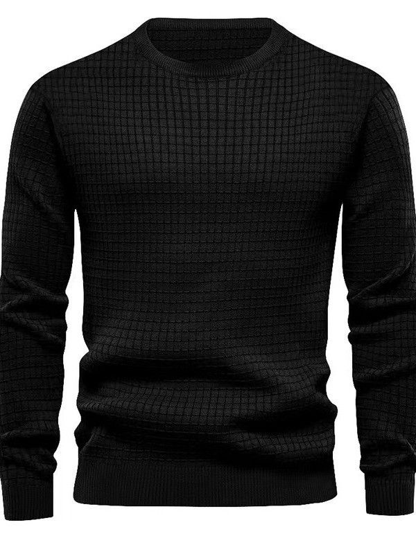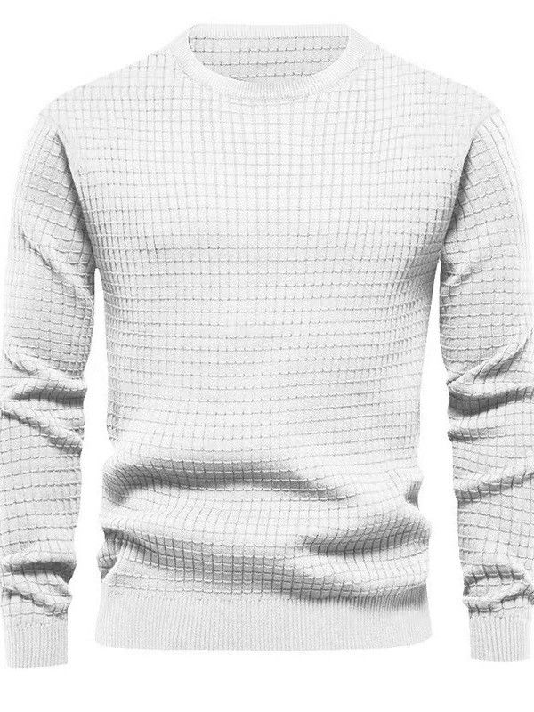 男士休閒百搭寬鬆平價圓領長袖華夫格不加絨衛衣