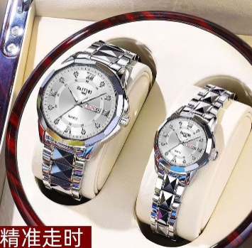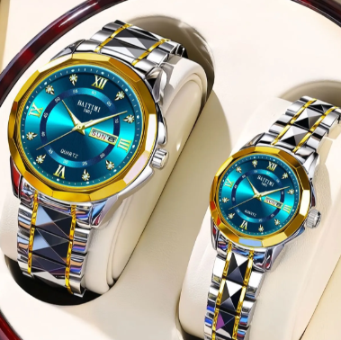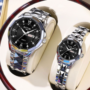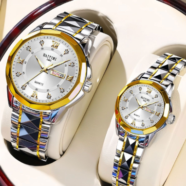 瑞士情侶手錶一女一男全自動機械錶簡約高檔防水夜光雙日曆名錶