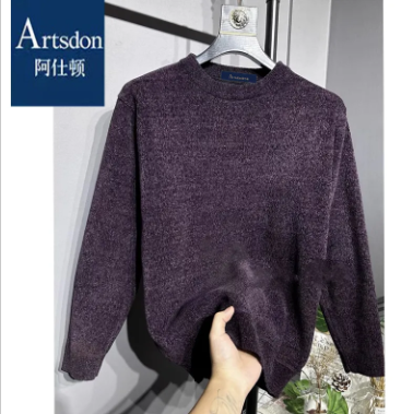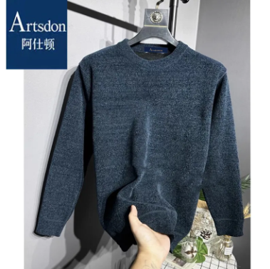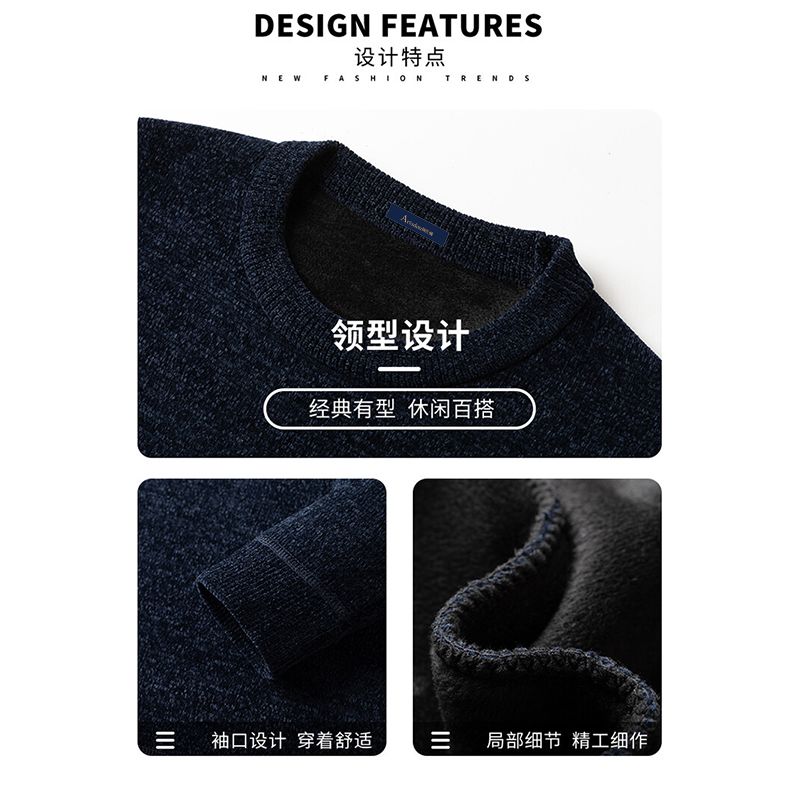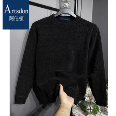 阿仕頓冬季加厚加絨毛衣針織衫圓領男士雪尼爾針織衫