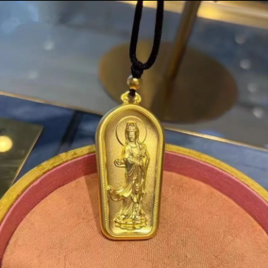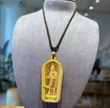 心經觀音金色吊墜送黑繩 [榮華富貴]*1