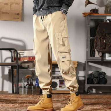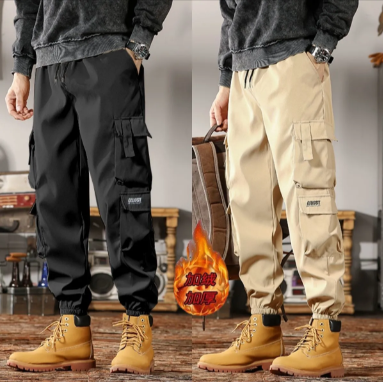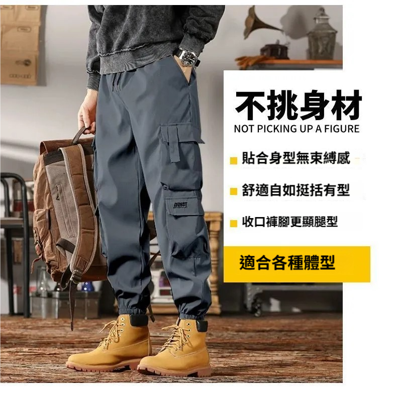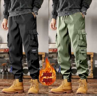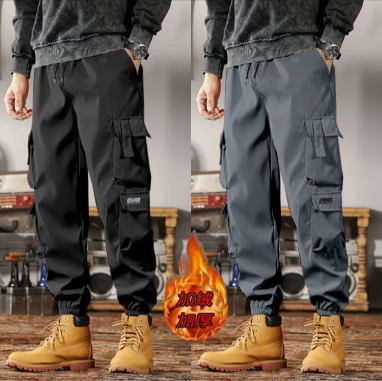 戶外耐磨工裝褲男士加絨潮流寬鬆大碼口袋冬季束腳勞保休閒褲