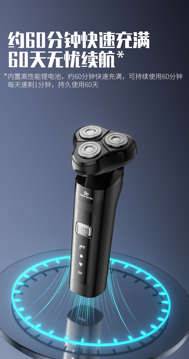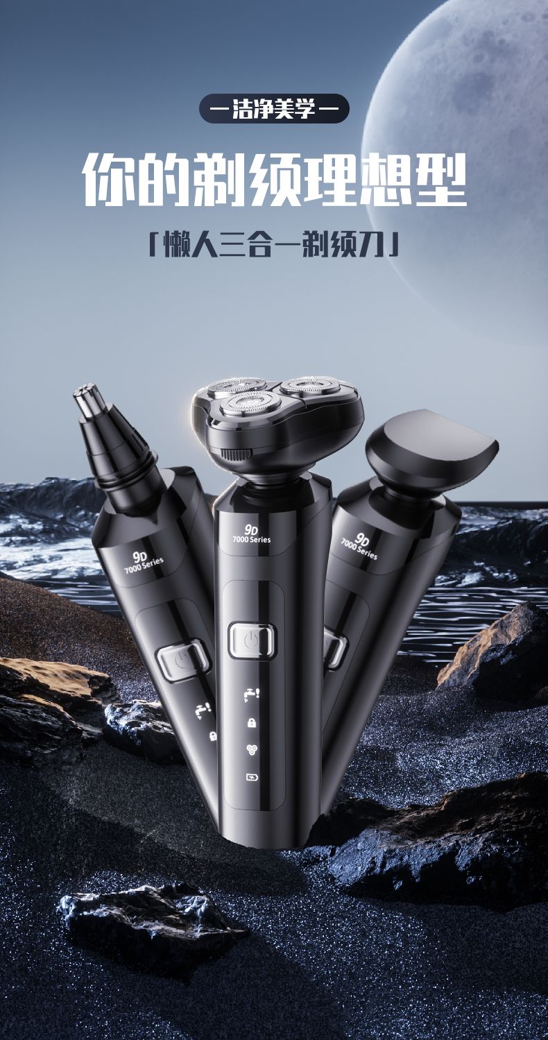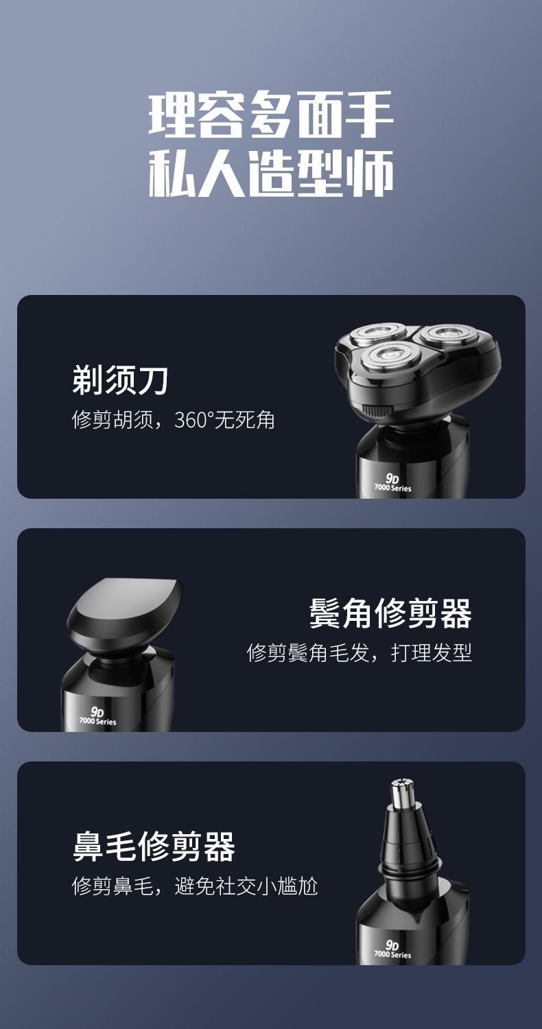 三合一電動剃鬚刀男士高檔智能乾濕雙剃充電式刮鬍刀旋轉鬍鬚刀 3D