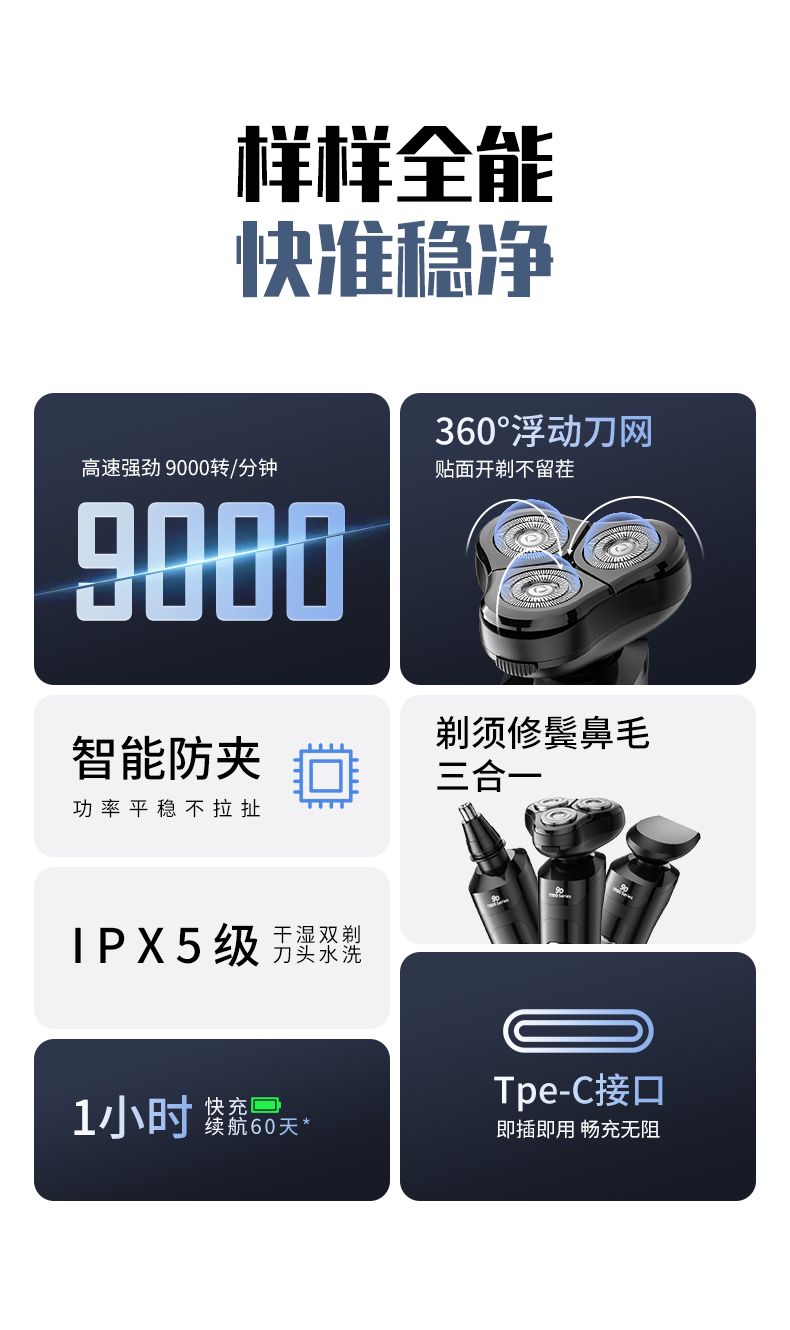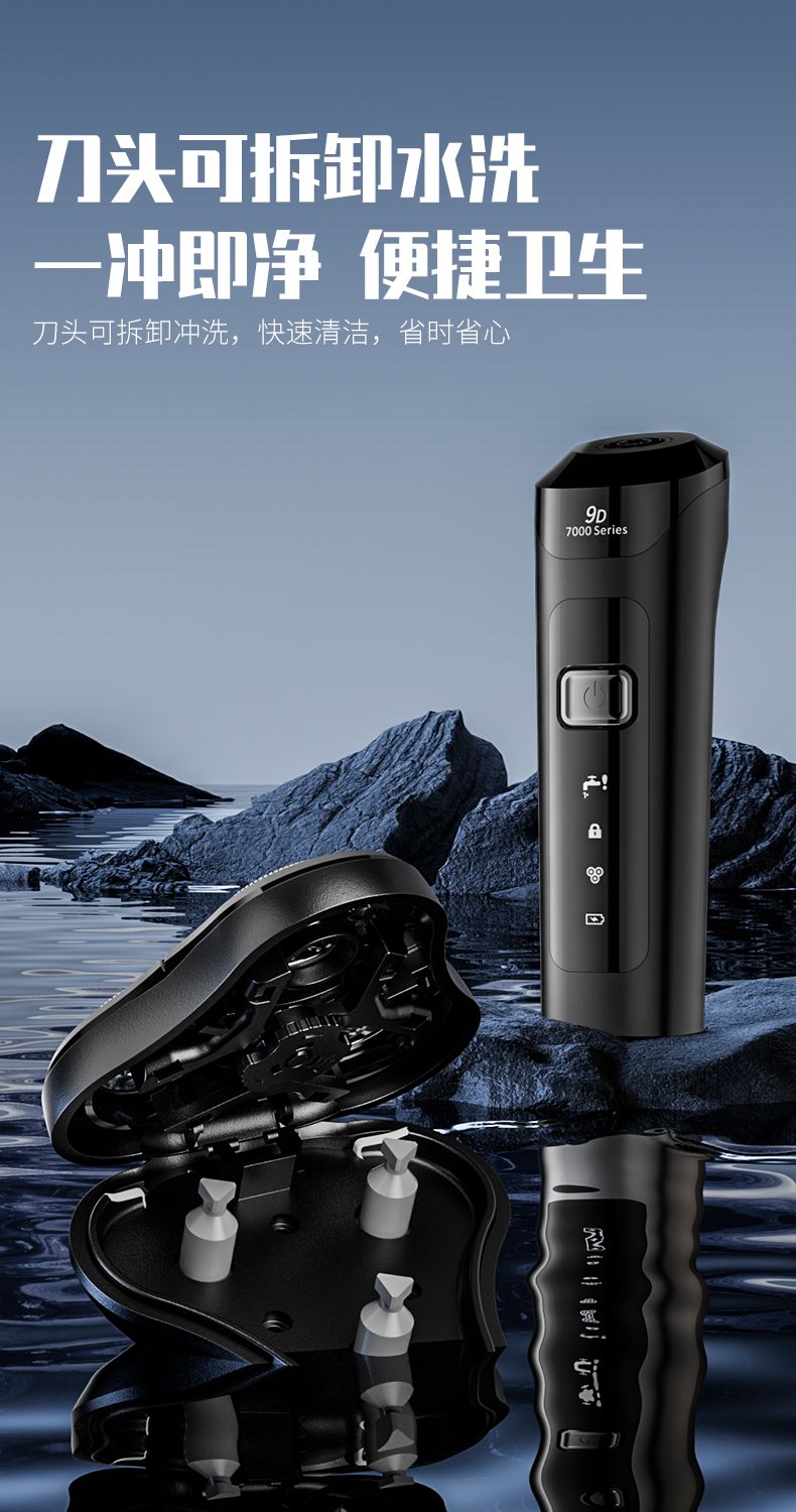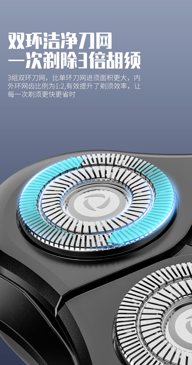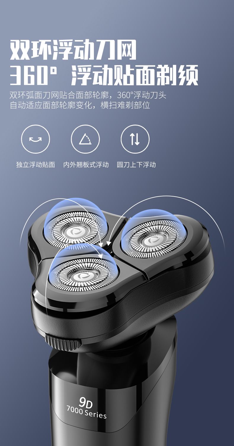 三合一電動剃鬚刀男士高檔智能乾濕雙剃充電式刮鬍刀旋轉鬍鬚刀 3D
