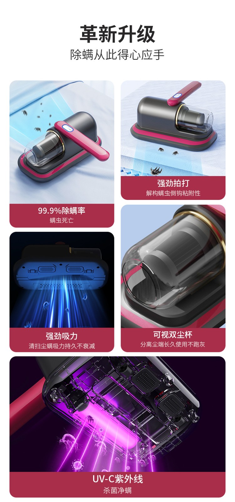 德國家用充電除蟎儀器大吸力雙拍打紫外線殺菌