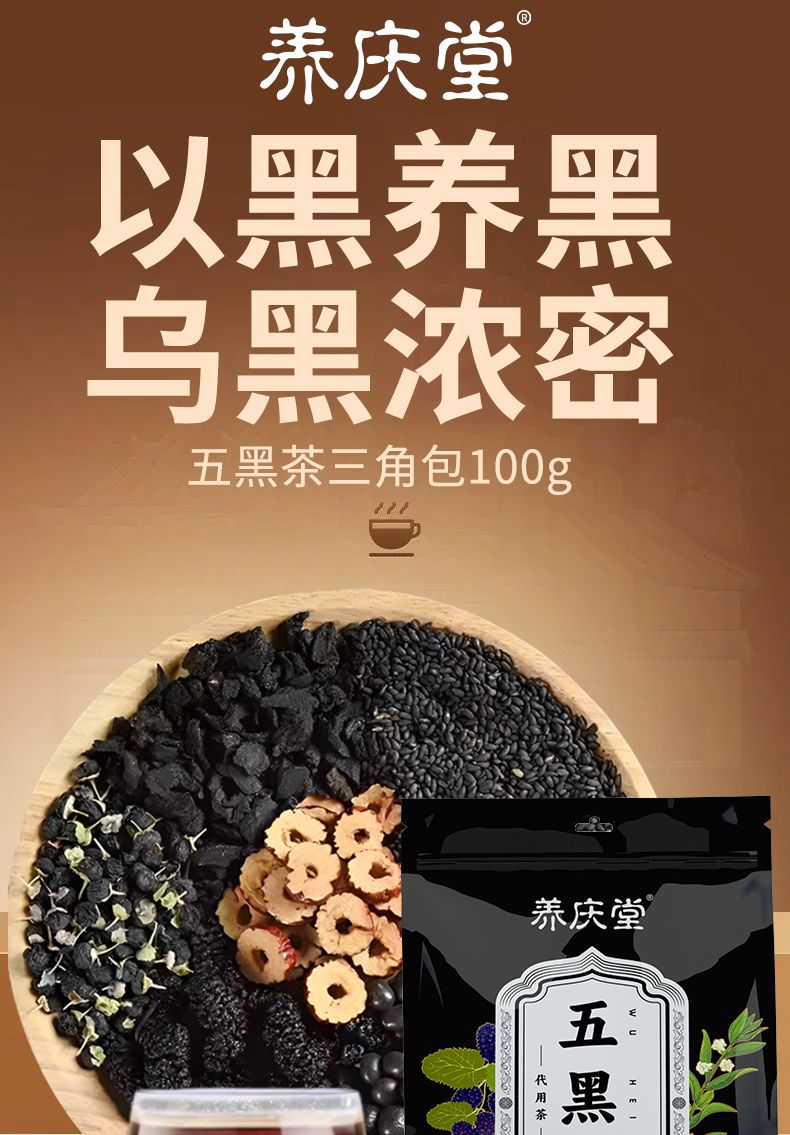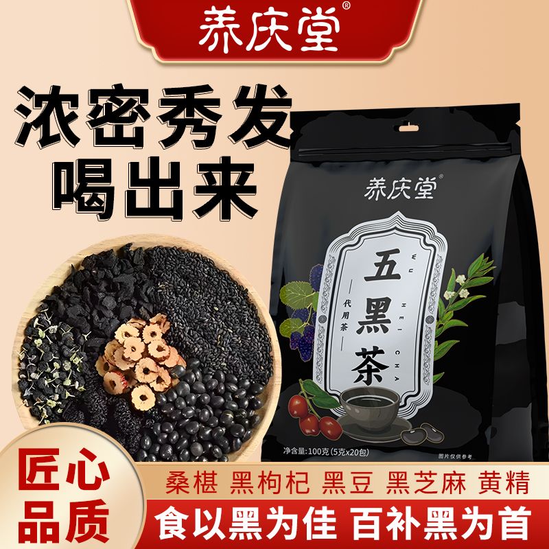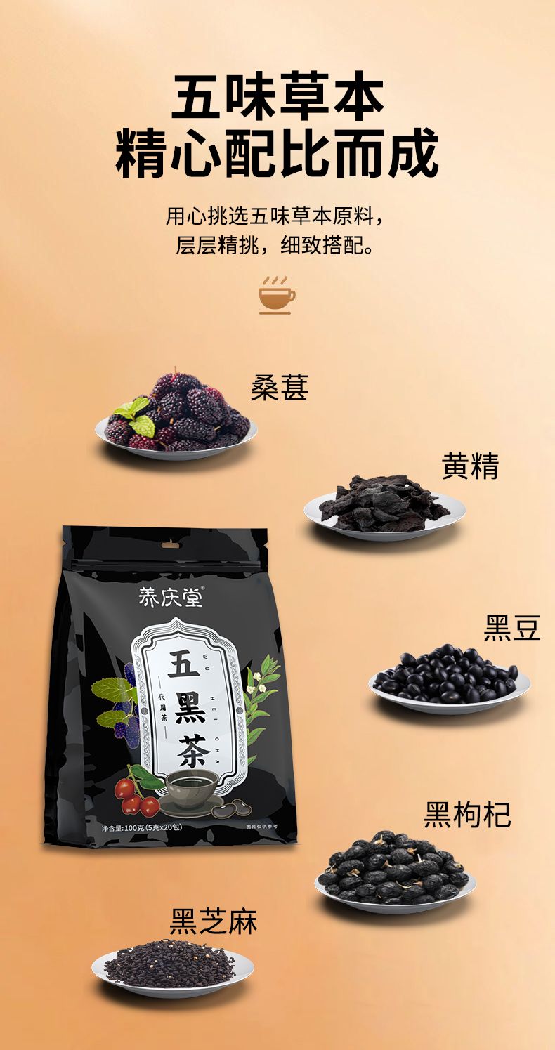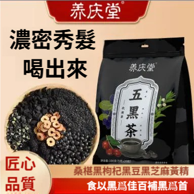 五黑茶 桑椹乾黑芝麻黑枸杞黑豆黃精紅棗脫髮養髮
